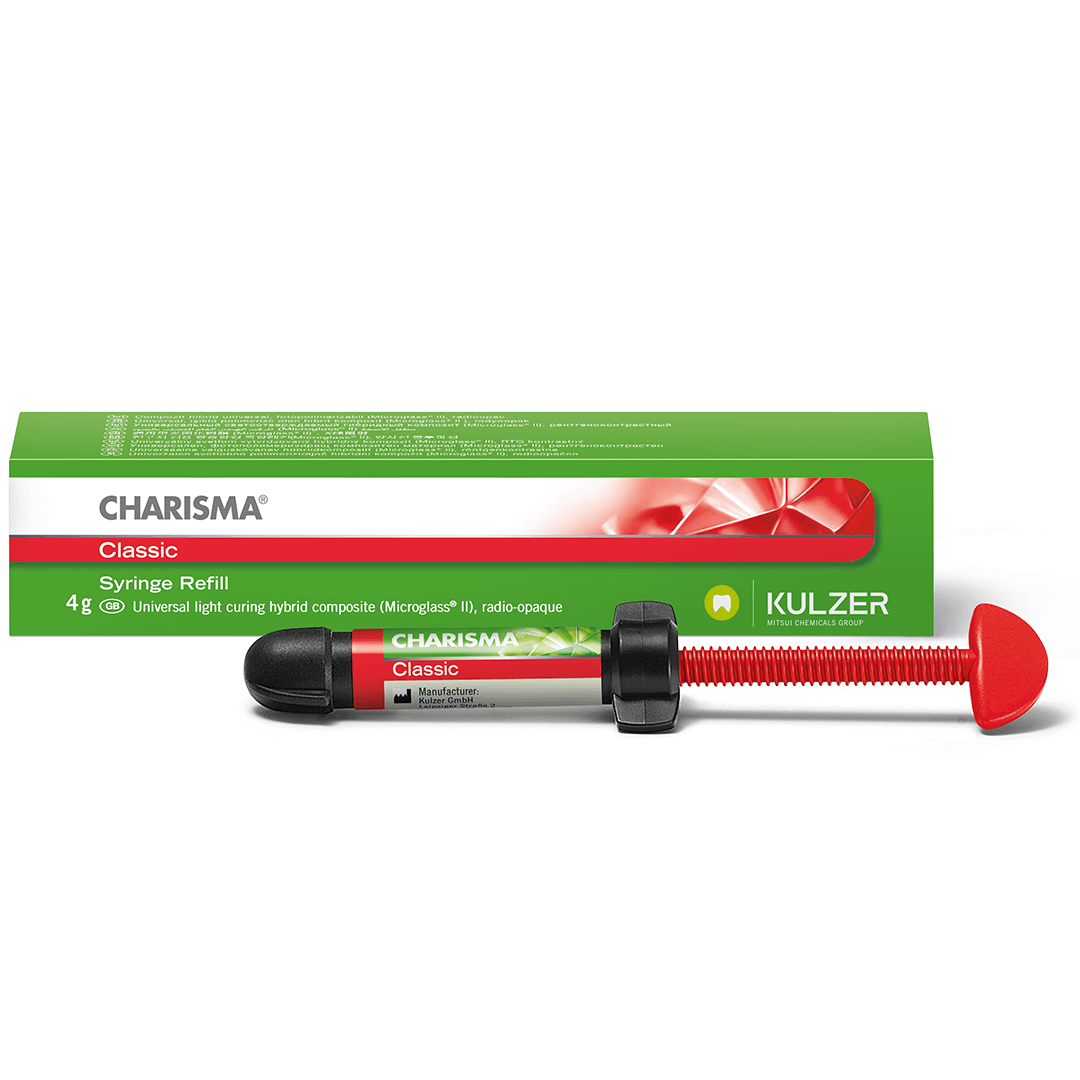 کاریزما کلاسیک را مطابق با جدول با استفاده از یک لامپ کیورینگ QHT (کوارتز-هالوژن-تنگستن) یا LED با لامپ نور آبی رنگ (طول موج ۴۴۰ تا ۴۸۰ نانومتر ،دارای طیف و بازده نوری ۵۵۰ تا ۱۵۵۰ میلیوات بر سانتیتر مربع) در لایه های نازک (حداکثر ۲ میلیمتر ) پلیمرایز کنید.در طول پلیمریزاسیون، یک لایه مهار بر روی سطح تشکیل میشود که نباید در طول مرحله ساخت عمل ترمیم لمس، آلوده یا پاک شود. این لایه به عنوان اتصال شیمیایی لایه های کامپوزیت بعدی که اضافه میشوند، عمل میکند.